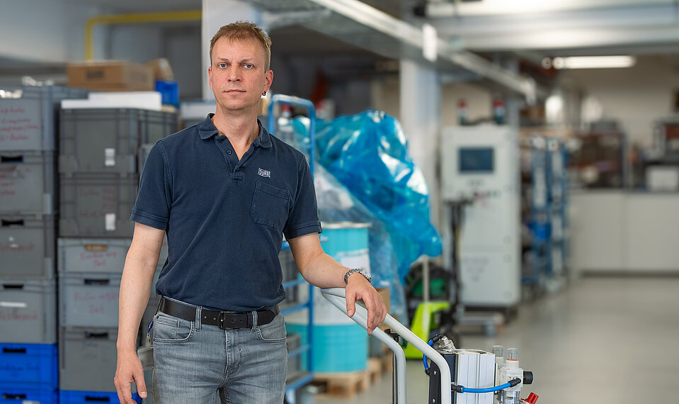 Die Aufgaben von Roland Schipietz passen in kein Schema. Genau das mag er an seinem Job, denn es bringt ihn mit Menschen aus ganz unterschiedlichen Bereichen zusammen. Er unterstützt die Sales-Kollegen bei technischen Rückfragen, setzt Versuchsaufbauten um oder führt eigenhändig Beschichtungsversuche durch – dokumentiert, analysiert und gibt die Ergebnisse weiter. Bemerkt er Abweichungen, tauscht er sich mit der Qualitätssicherung aus und bringt seine Erkenntnisse ins Produktmanagement ein. Vor Ort oder per Teams führt er Hands-on-Trainings mit Kunden durch und findet gemeinsam mit ihnen Lösungen. Es sind diese intensiven Einblicke in die Praxis, die ihn zur idealen Schnittstelle zwischen der Entwicklungsabteilung und dem INP-Sales-Team machen.