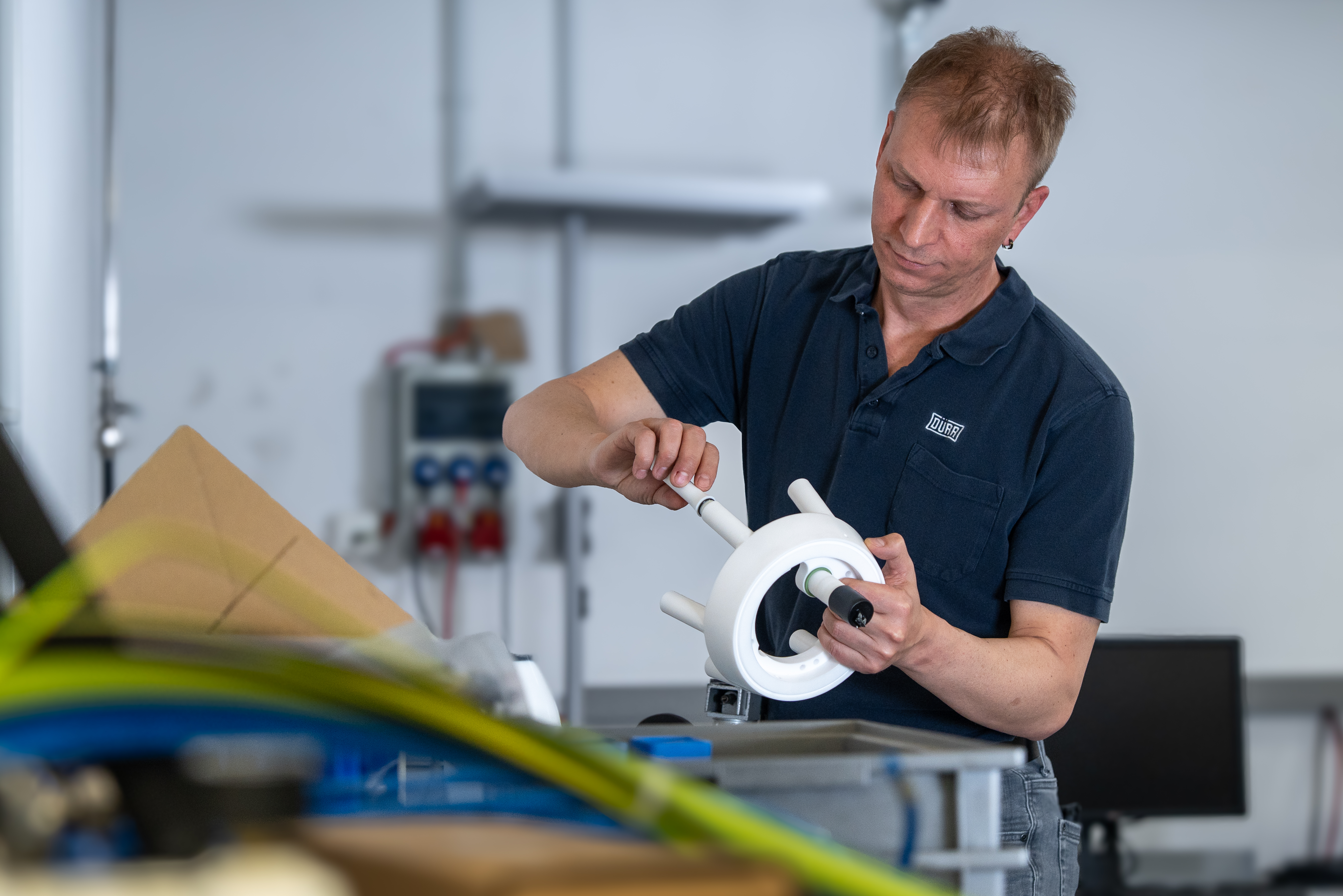 „Typisch ist, dass nichts typisch ist“, berichtet Schipietz, während er sich entspannt zurücklehnt. „Unsere Kunden kommen aus den unterschiedlichsten Branchen – da ist jede Anfrage anders.“ Wenn es so etwas wie einen roten Faden gibt, dann sind es grobe Prozessideen, mit der Bitte mal zu prüfen, ob ein solcher Lackierprozess überhaupt funktionieren könnte – in der gewünschten Taktzeit? Und mit welchem Equipment? Für einen fundierte Einschätzung greift Schipietz auf einen reichen Erfahrungsschatz zurück. „Es fühlt sich nicht so an, aber ich bin seit fast 28 Jahren in der Branche. In der Zeit habe ich vieles gesehen, ausprobiert und gelernt – vor allem aus dem, was nicht funktioniert hat,“ meint er rückblickend und grüßt mit freundlichem Nicken einen vorbeikommenden Kollegen.
