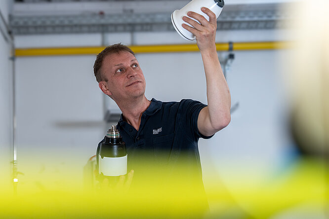 Our automated solution meets the high requirements in terms of cycle time and detergent consumption. The EcoBell Cleaner D2 cleans the outside of the atomizer within the cycle time. At the same time, the paint is changed and the paint channels inside the atomizer are cleaned. This means that the system can start painting a surface again after just 15 seconds.
